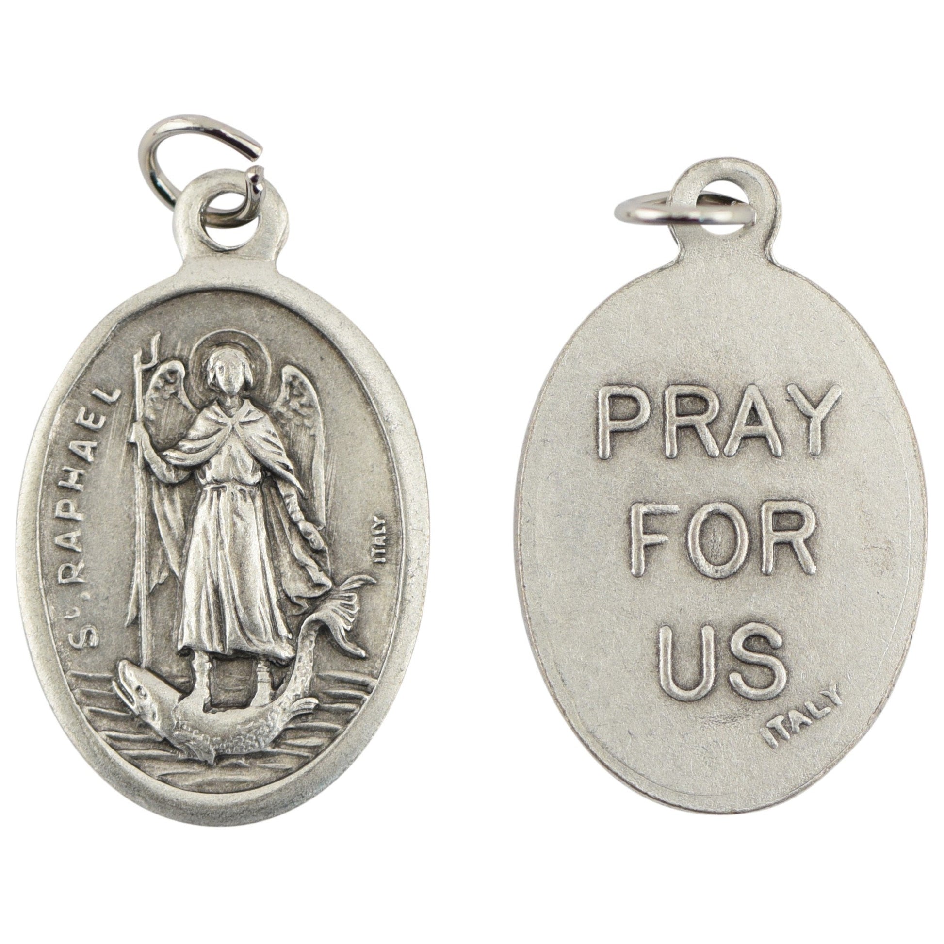 Here is a unique handmade bracelet that would be a suitable gift for any Sacrament or occasion. This bracelet is adorned with a Saint Michael/Guardian Angel medal, an Archangel Raphael medal, an Archangel Gabriel medal, stainless steel angel wing charm, and a blue crystal charm. The bangle is expandable ensuring the perfect fit for every wrist.