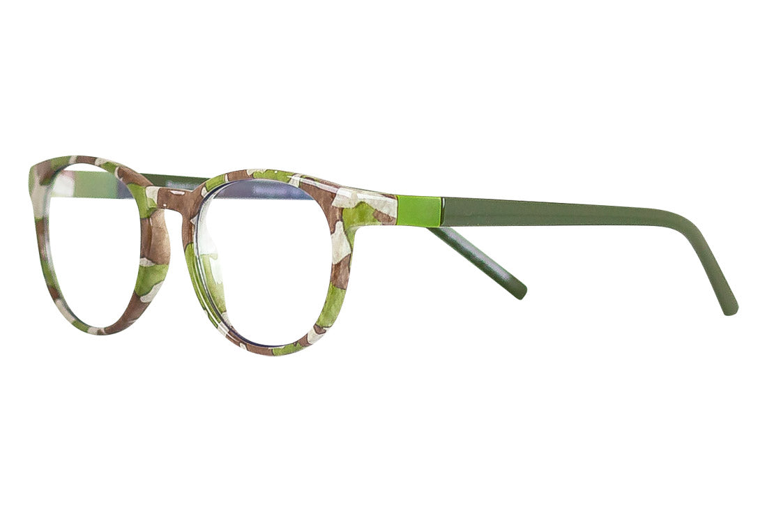 Army green front, green hinges and army green arms with anti-scratch and anti-glare with blue-light filtering lenses.