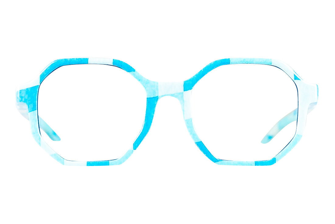 Pixel print front, light blue hinges and pixel print arms with anti-scratch and anti-glare with blue-light filtering lenses.