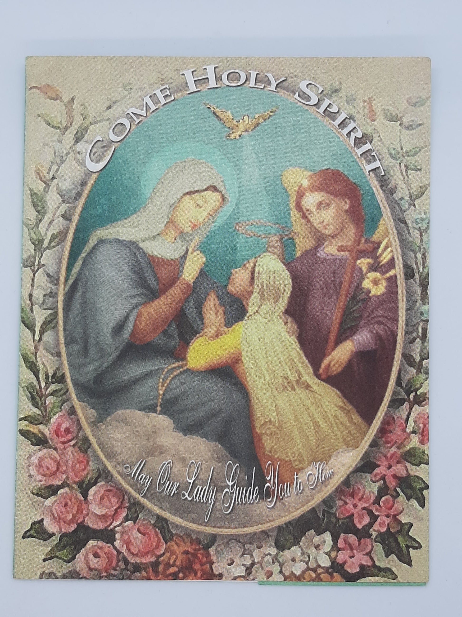 Give this vintage looking card for any occasion. The inside is blank, and there is a tear out bookmark as an added little gift for the recipient. The back has a prayer to the Holy Spirit. This would be a suitable card for any Sacrament or occasion.