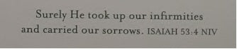 Scripture: Surely He took up our infirmities and carried our sorrows. ISAIAH 53:4 NIV