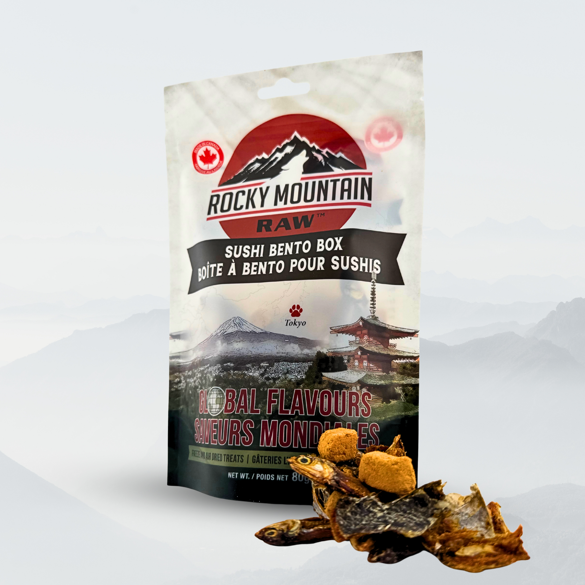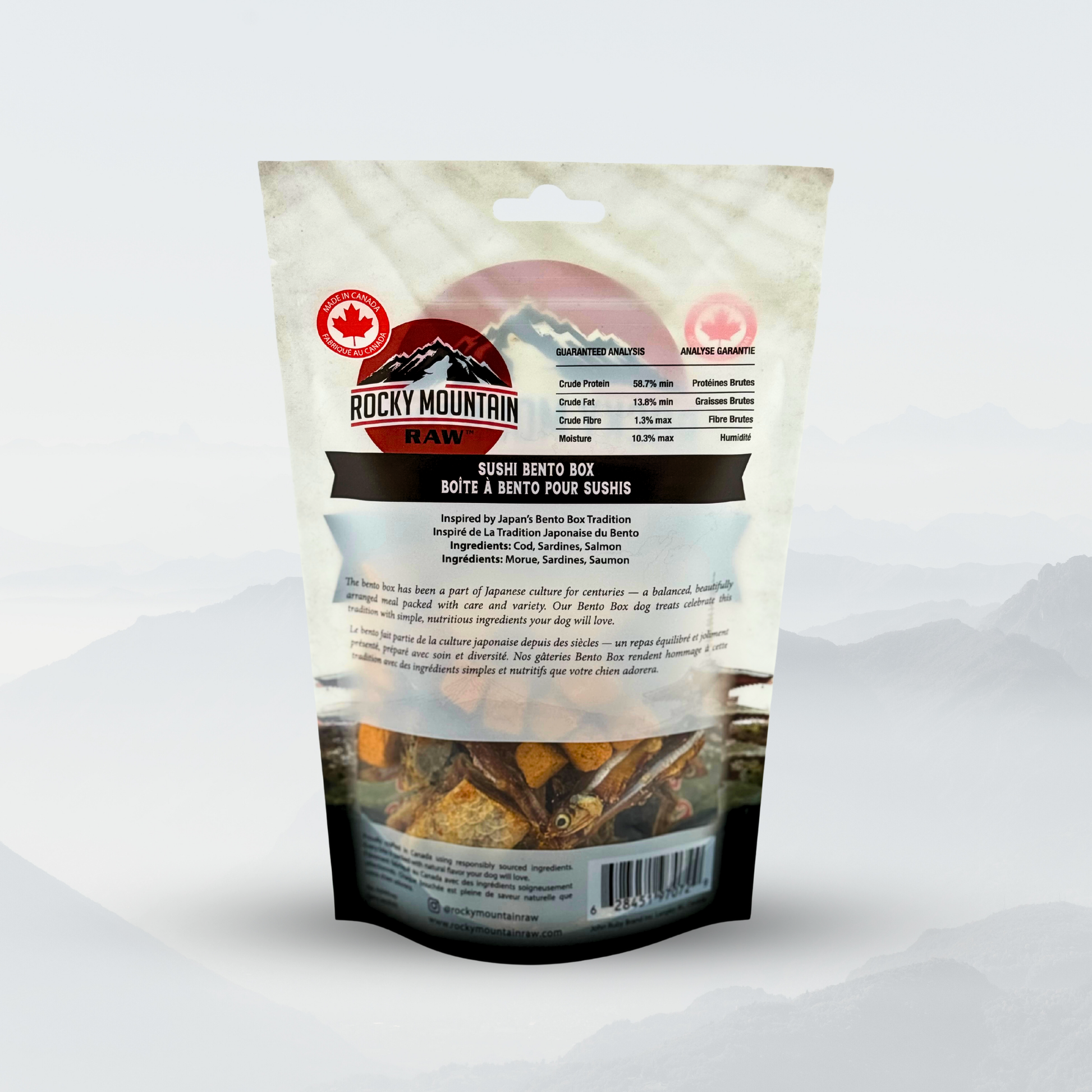 Treat your pup to the taste of Japan with our Sushi Bento Box! Made with air-dried sardines and cod skins and freeze-dried salmon, these snacks deliver a savory, ocean-fresh flavor your dog will love. Perfect as a training reward, mealtime topper, or everyday snack, these grain-free, natural dog treats support health and vitality while offering a truly gourmet experience.
