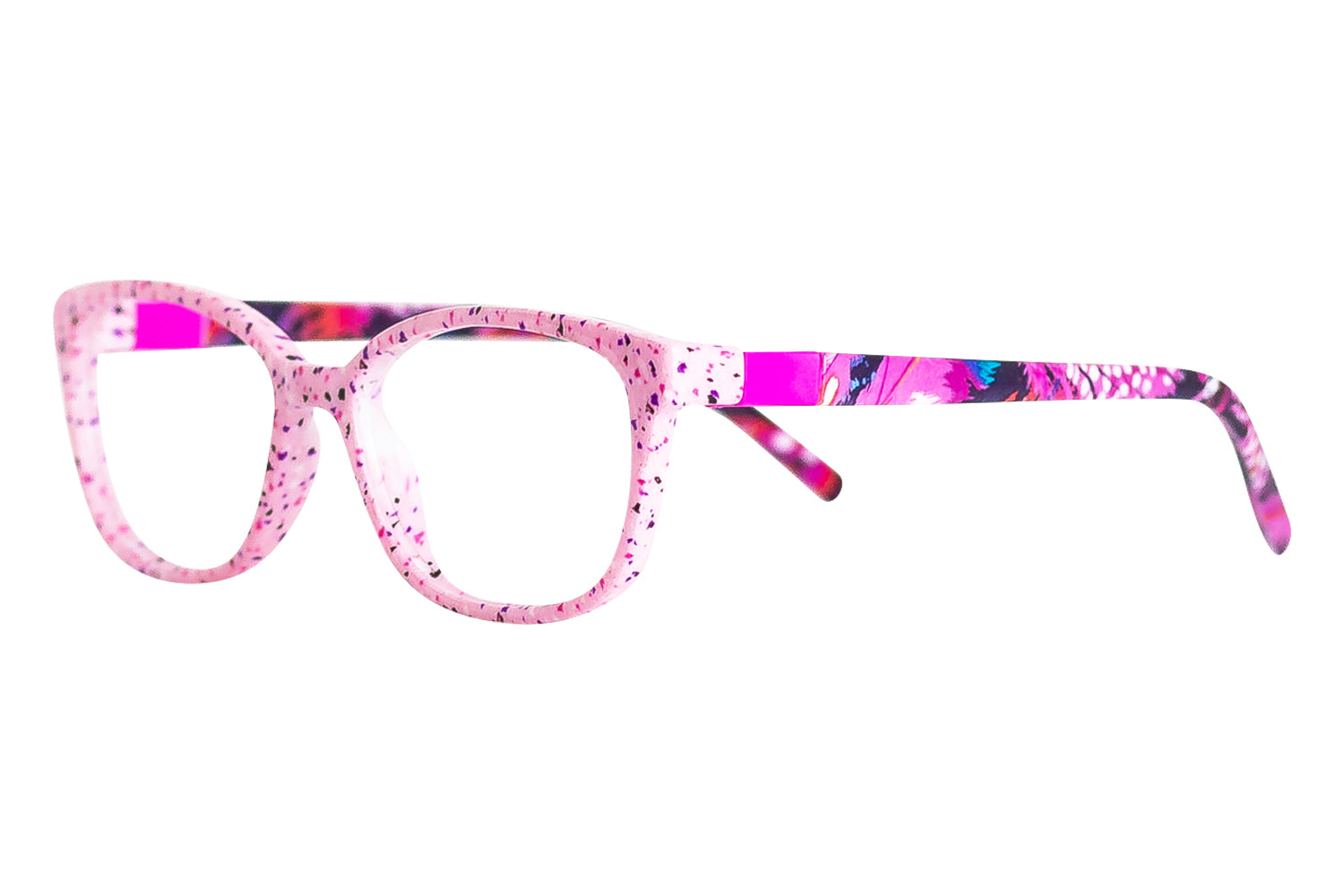 This beautiful classic shape will be a hit, even when the jokes are not. It’s a squarie-sh shape that sits perfectly on your face. Try this in our own pattern, Terrazzo Pink – the colours are sure to be a hit.